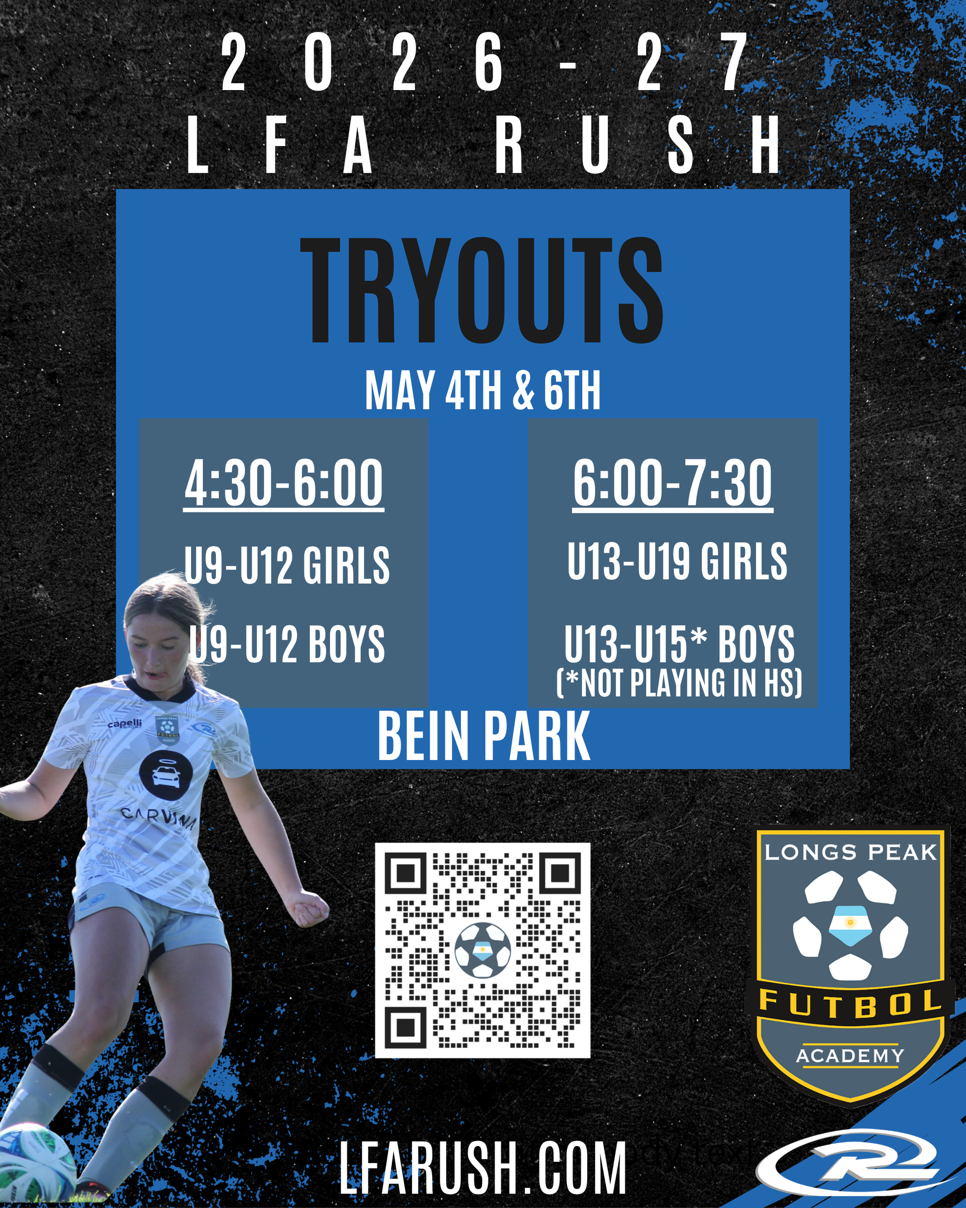 As an affiliate of Rush Soccer, LFA Rush is part of an international network of 80 youth and professional clubs. Tryouts for the 2025-2026 season will be held in Berthoud during the last week of May. The club also offers summer programming. Visit www.lfarush.com to learn more.